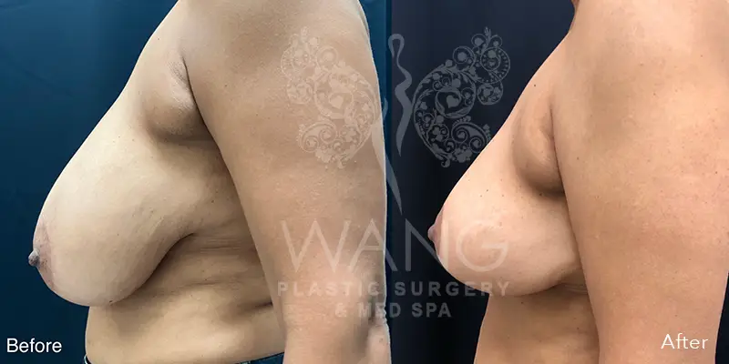 57 Y/O female from Orange County was unhappy with the sagging of her breast. Dr. Wang performed breast lift or mastopexy to remove excess skin and tightened the surrounding tissue to create a lifted shape.